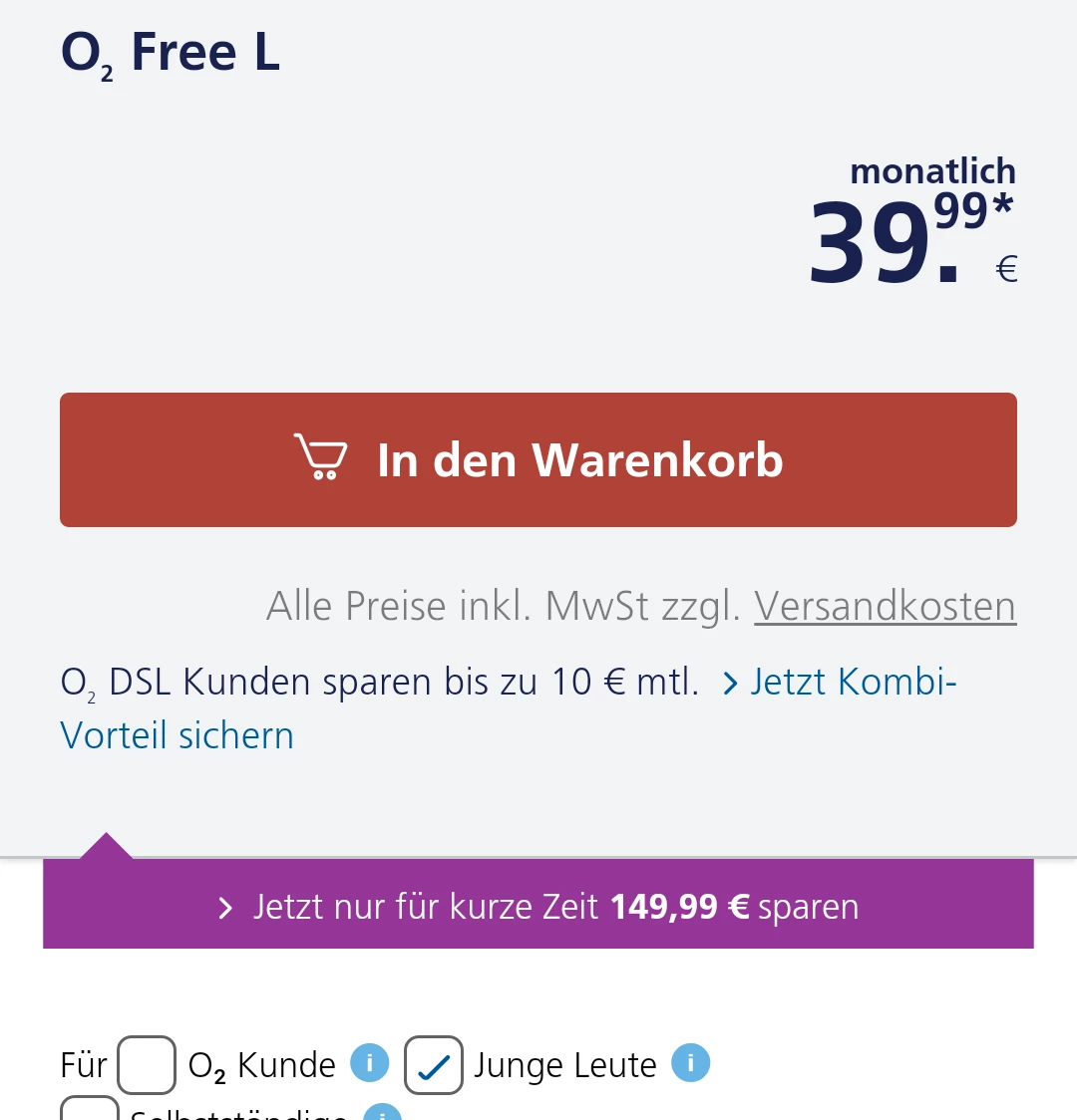 Doch: Handyvertrag für Junge Leute günstig online bestellen: Alle o2 Angebote Einfach oben dann einen Haken bei junge Leute setzen.