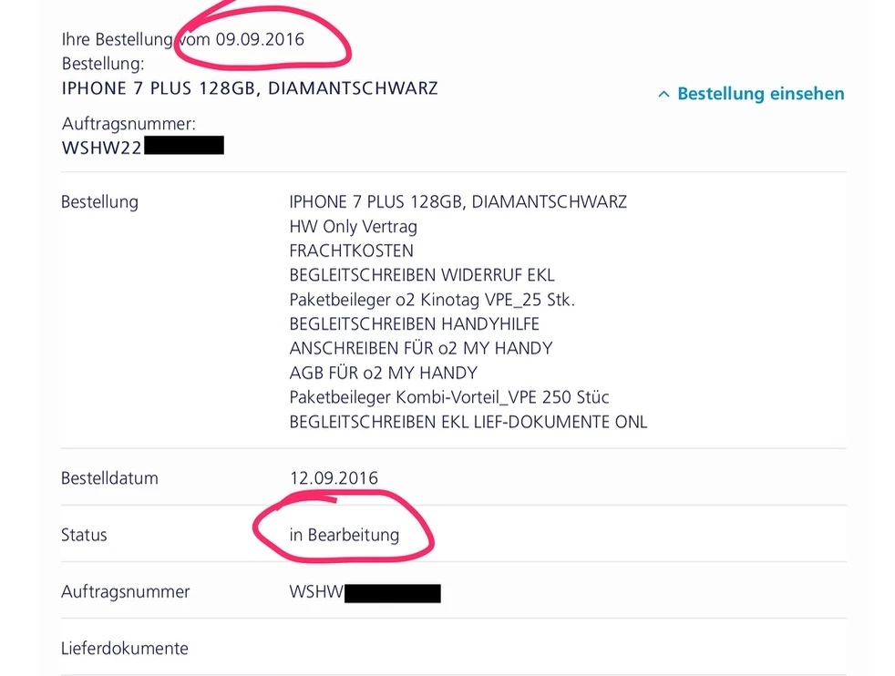 iPhone 7 Plus 32gb MS heute bei mir auf in Bearbeitung gegangen. Bestellt 9.9.16 17Uhr.