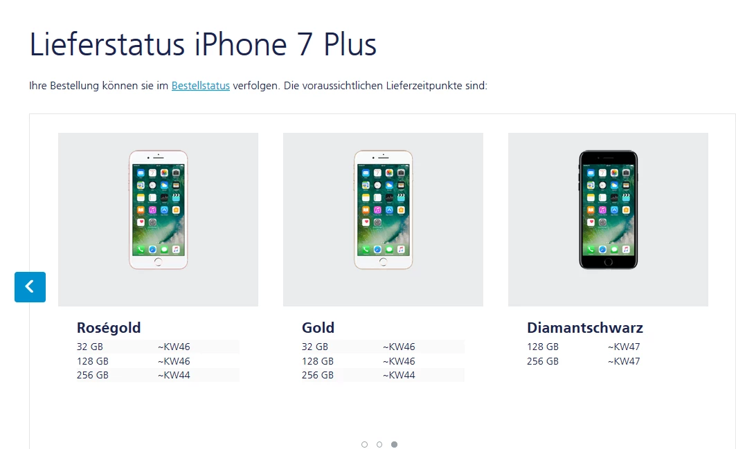 beim mattschwarz plus Modell 128 gb hiess es kw42  die bis 4.10 bestellt haben und nun steht da kw 45 .