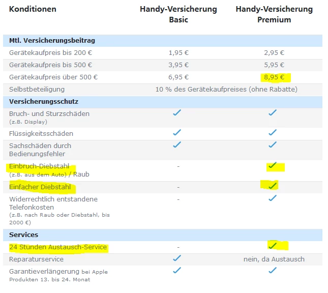 Wenn die Punke für dich nicht relevant sind, kannst du auch die Basic Versicherung abschließen, aber wegen zwei Euro weniger keinen Austauschservice zu haben würde ich mir nicht antun.