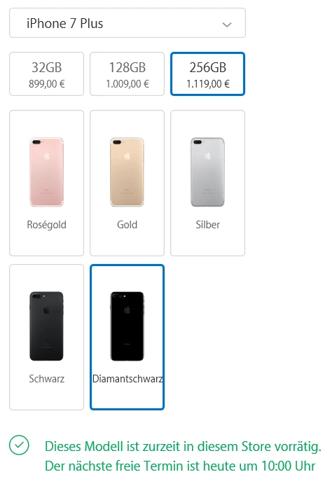 In Frankfurt auch fast alle IP+ Modelle vorrätig