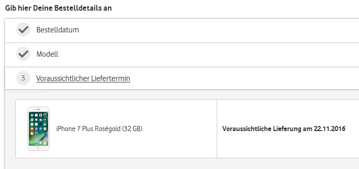 Habe am 10.09.2016 ein iPhone 7 plus 256 GB Diamantschwarz bestellt (Auftragsnummer: