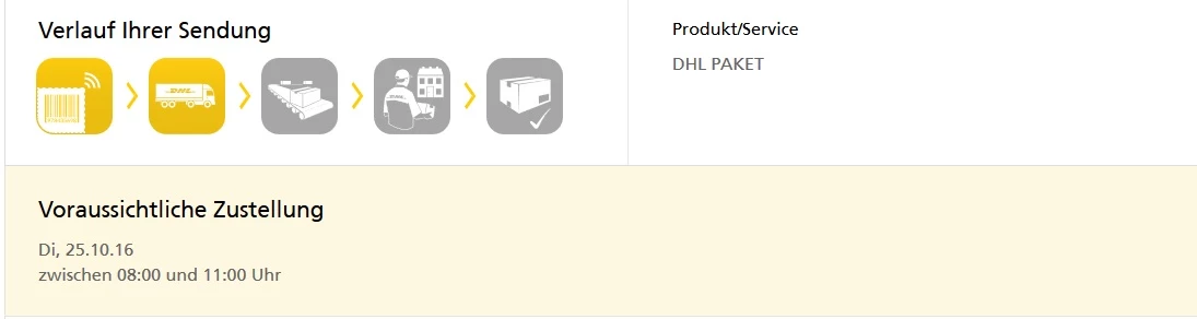 Am Samstag ging es auf in Bearbeitung. Und morgen soll es zwischen 8 und 11 Uhr geliefert werden.