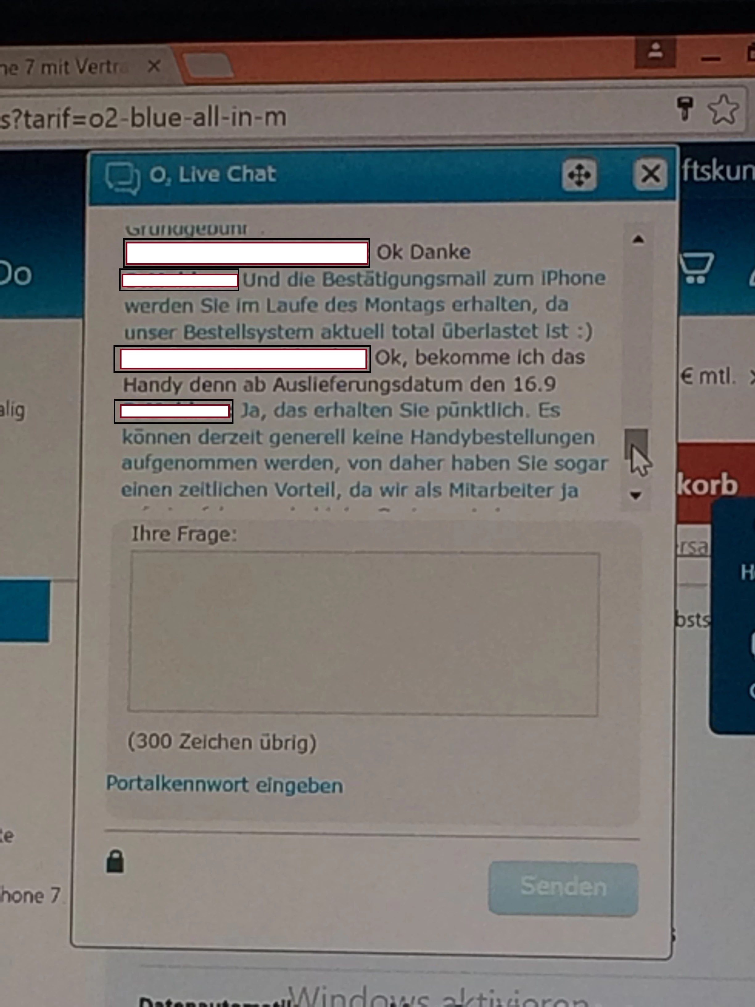 Hier noch der Auszug aus dem Chat vom 9.9 zur Bestellung des Iphone 7 32 GB schwarz, kam natürlich nicht an und daher die neue Bestellung am 20.9