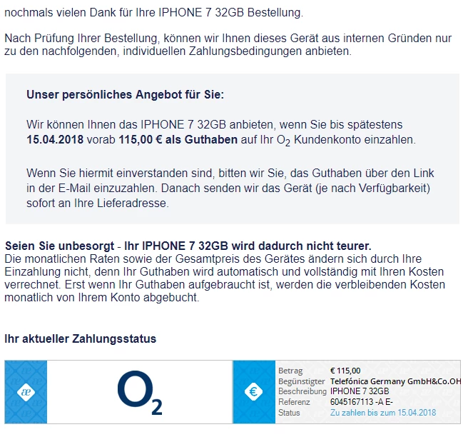 Verfällt meine Handybestellung (ohne Vertrag) dann einfach nach Ablauf der angegebenen Frist? Ich hätte bis zum 15.04. Zeit, um die 115€ an o2 zu schicken "wenn ich dieses Angebot nutzen möchte, wenn ich damit einverstanden bin"