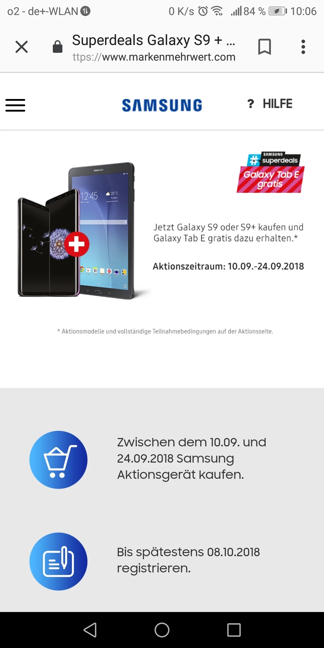 Ich hab am 19.9 das Samsung Galaxy S9 mit gratis Samsung Tab ohne Mobilfunkvertrsg gekauft.