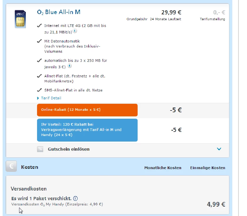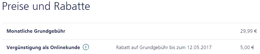 Die 5€ Rabatt wegen Online Kunde stehen in der Tarifübersicht..