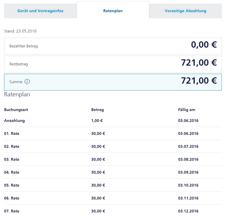 Der zugesagt Rabatt wird nicht im Handy Ratenplan angezeigt.