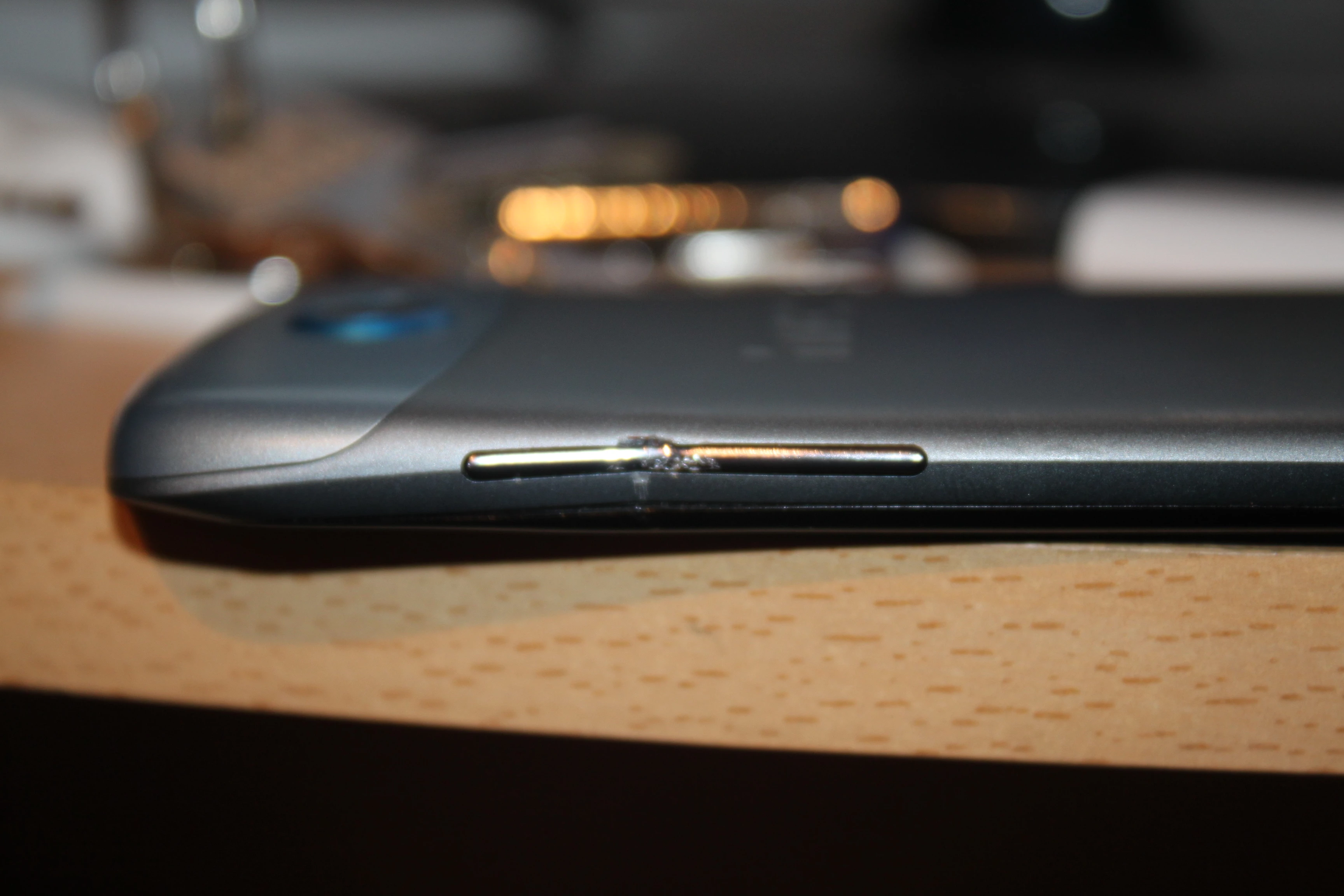Jetzt hat es eine ziehmlich dicke delle an der Seite und ich kann den Lauter-Knopf nicht mehr benutzen (Siehe Bilder) weil es gestern mit der Seite auf eine Betongtreppe gefallen ist da ich angestoßen wurde wo ich das in der Hand hatte und es mir dadurch runtergefallen ist.