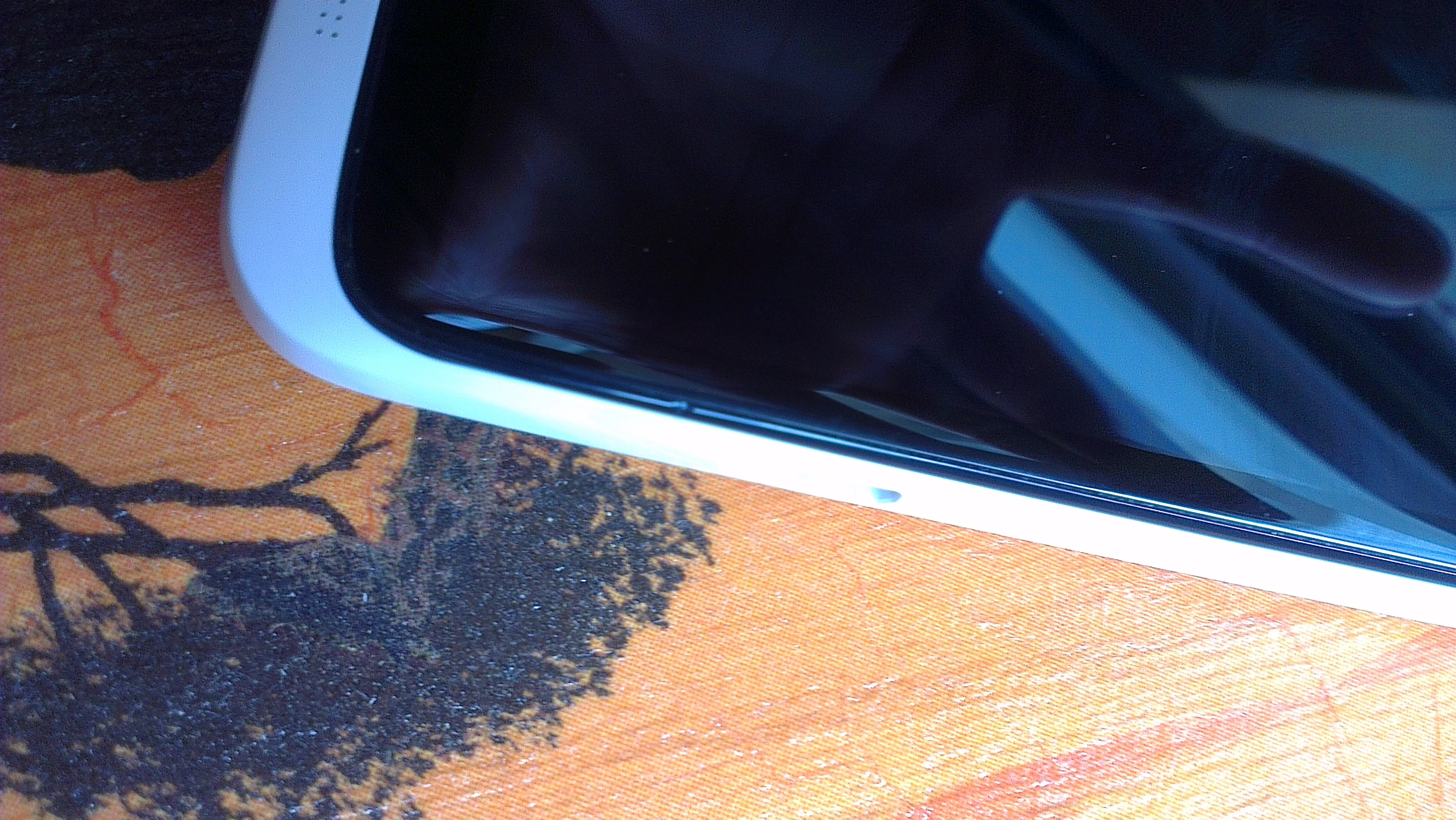 Nun ist ähnliches auch bei einem anderen gerät hier passiert, da ist oben rechts, ebenfalls auf dem Glas, aber außerhalb des Displaybereichs eine Ecke weg geplatzt.