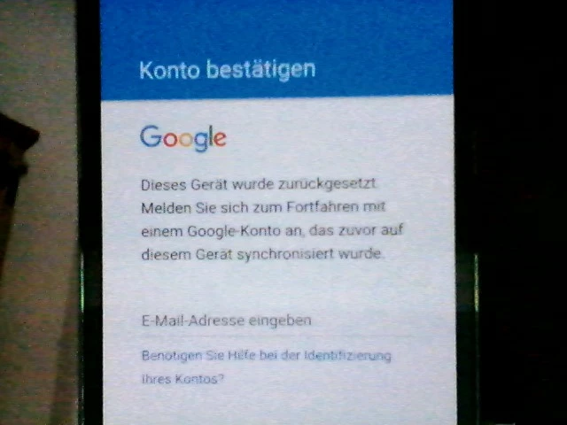 Ich startete das S% mit den 3 Tasten und machte den Werksrest. Dann wurde das System neu gestartet. Jetzt kam die Abfrage nach  - DEUSCHLAND -..... dann zustimmmen..., und dann die Abfrage nach dem GOOGLE-KONTO.  Hier komme ich nicht weiter, weil ich kein Passwort habe das auf dem S5 funktioniert. (AM  PC SCHON). D.h. ich kann jetzt nicht mal telefonieren weil der Google-Account nicht übersprungen werden kann.