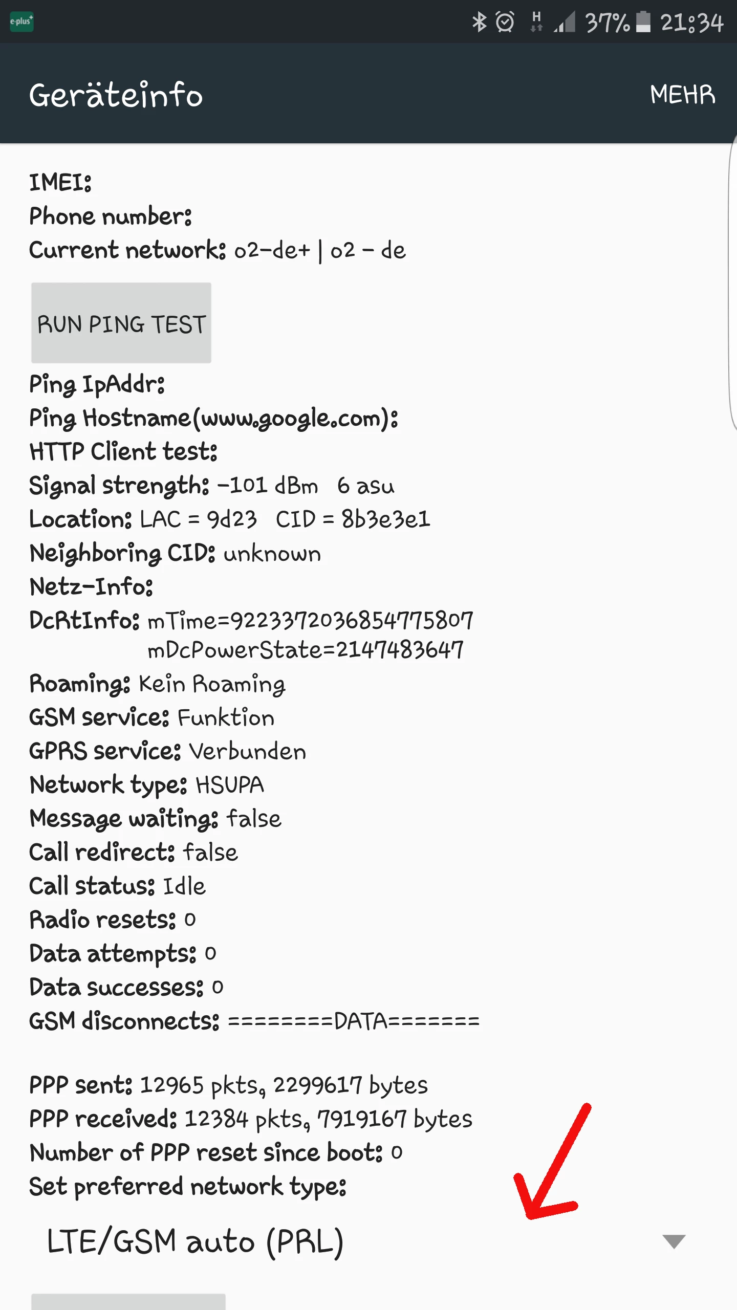 funktioniert dann das LTE? Bitte wähle nach diesen Test wieder "LTE/GSM auto (PRL)" aus...
