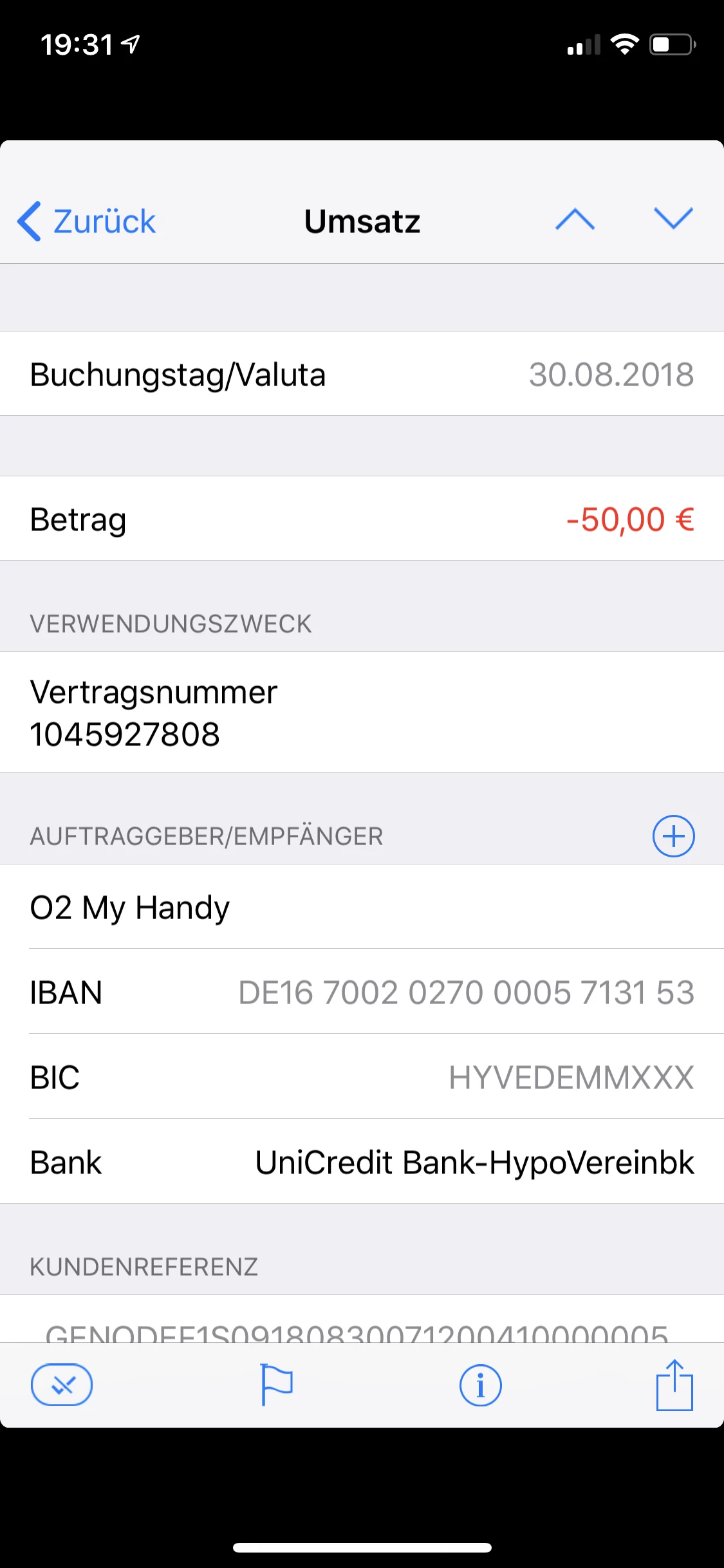 - genauer Betrag der Überweisung