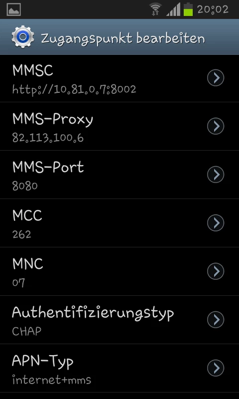 Ändere Mal den MMS-Proxy in 82.113.100.5
