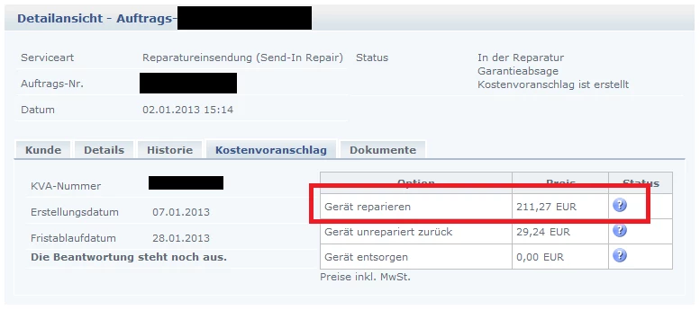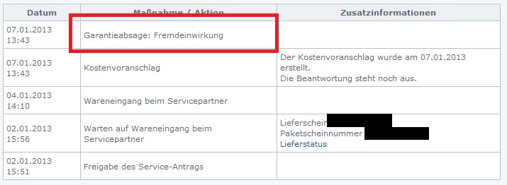 Wenn wie die schreiben "Leider ist es nicht möglich festzustellen, wodurch dieser Status in der Hauptsoftware entstanden ist." wie können die das bitte mir bzw dem Endverbraucher anlasten ?!?