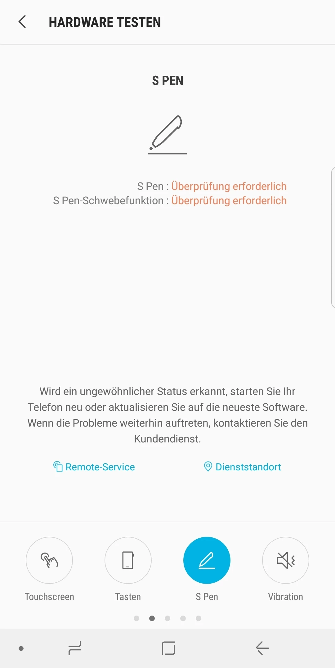 Samsung Note 8, nach update Stift defekt