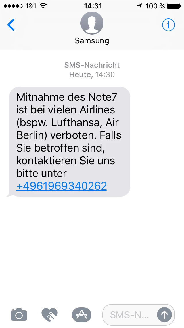 Diese Nachricht bekam ich gerade von Samsung auf´s Iphone 😊