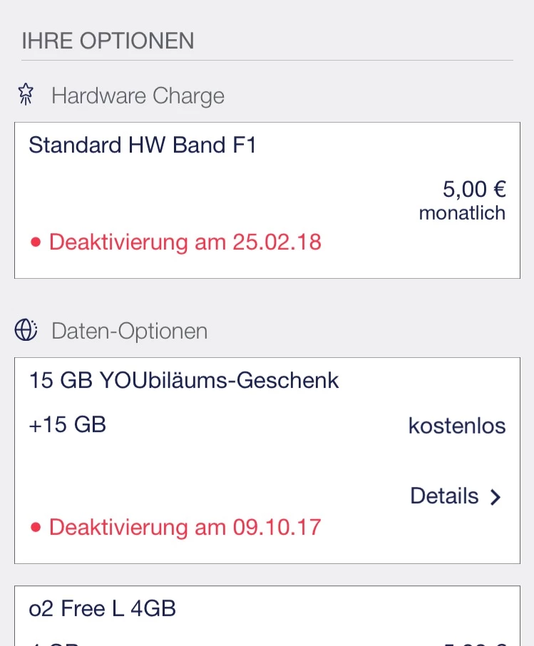 Ich bin damals von base zu O2 gewechselt , jedoch sehe ich erst jetzt etwas von der Hardware Charge mit Standard HW Band F1.