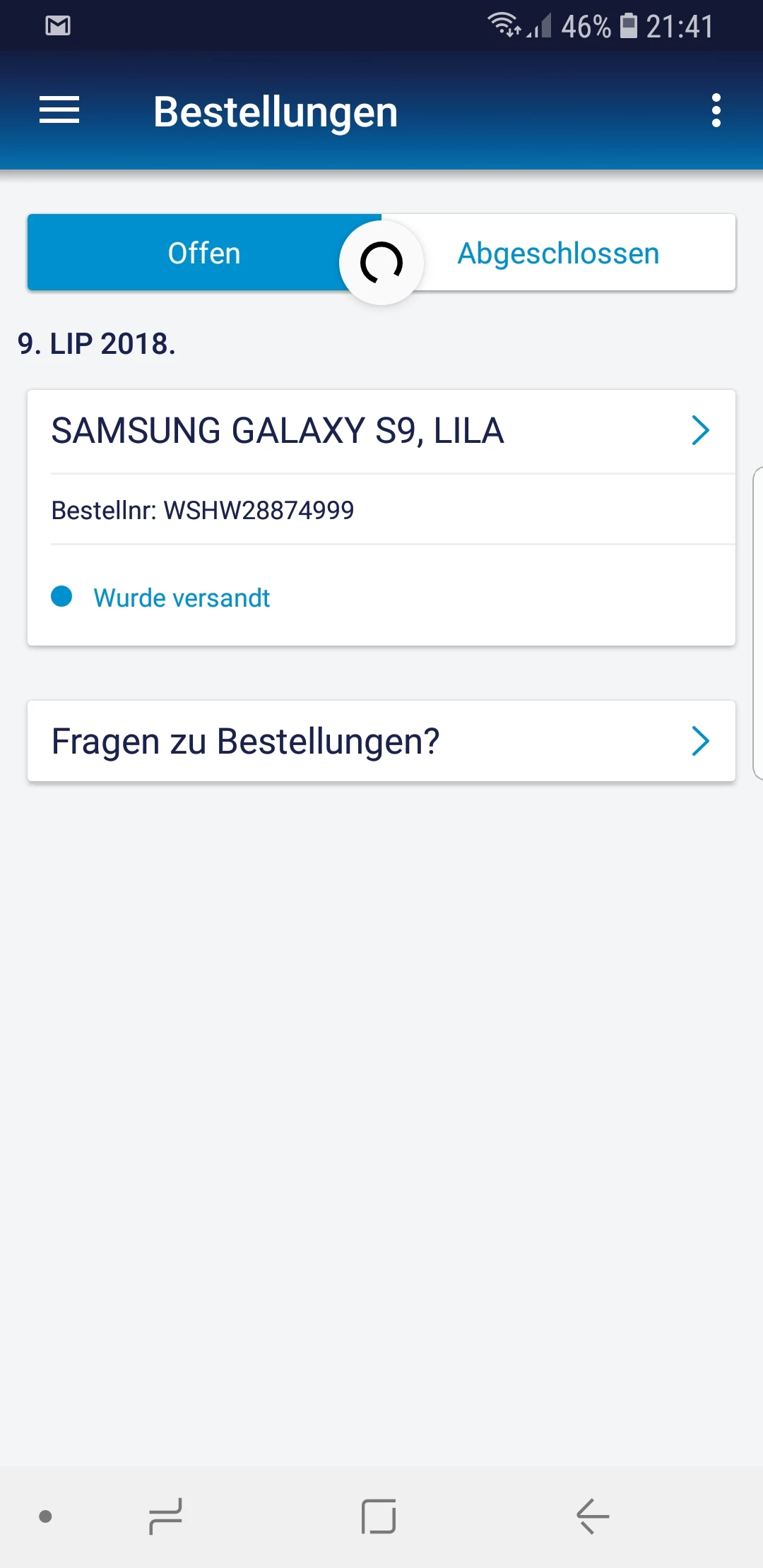 Ich habe einen neuen Vertrag abgeschlossen für Junge Leute aber bis jetzt habe ich nür mein Handy und Sim Karte bekommen und es hat geschrieben Ladestation und Samsung Galaxy s9 zusammen.  Meine Frage ist wo ist meine Ladestation dass ich noch kriegen muss. Bestellnr. WSHW28874999