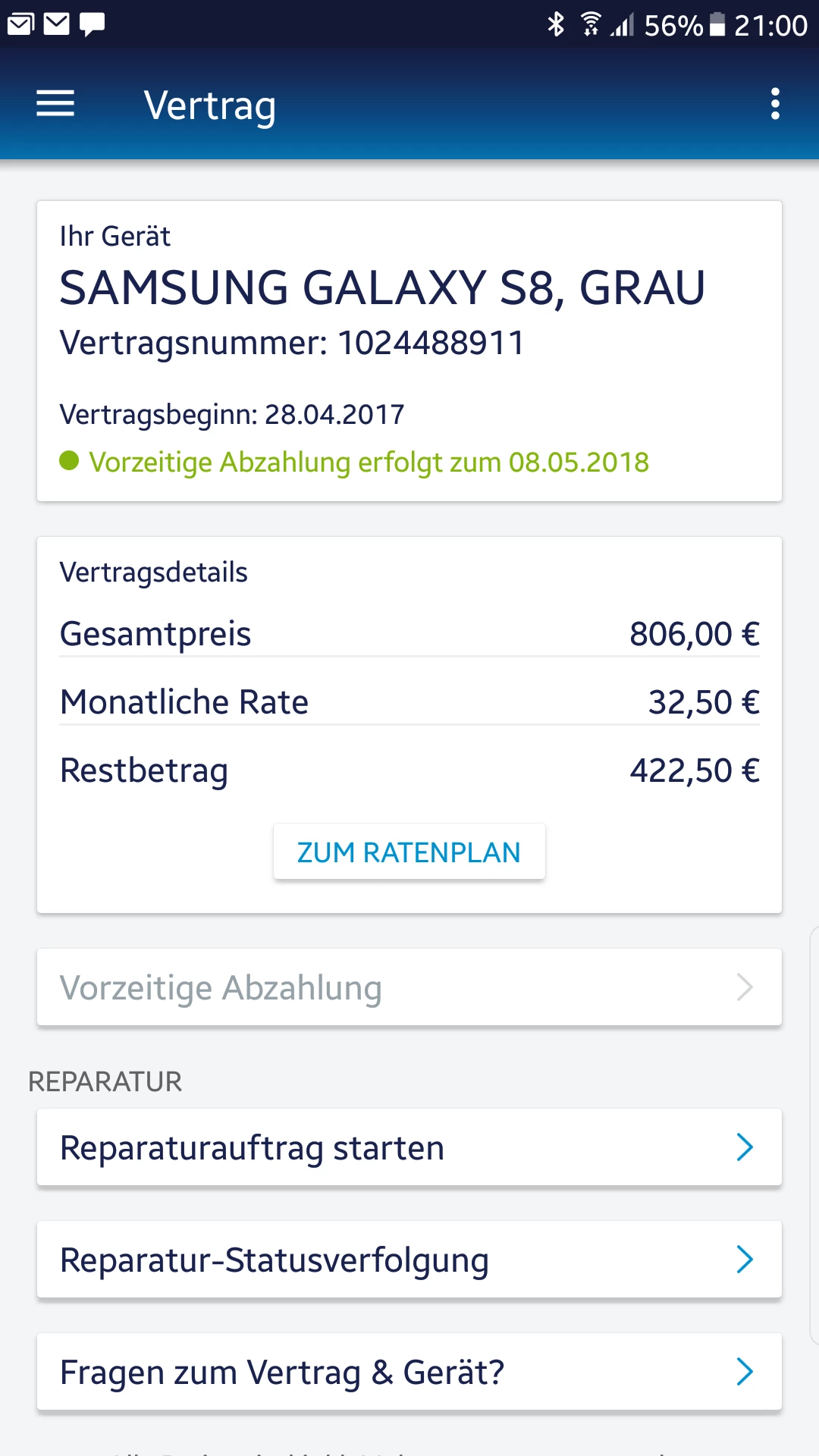 Vorzeitige Abzahlung - falschen Vertrag erwischt! Hilfe! Neben der Ablösung meines S7 mit der Endsumme 130€, ist auch fälschlicher Weise der jüngere Vertrag des S8 auf "vorzeitige Abzahlung" gesetzt worden. Kann man das noch stornieren, liebe O2 Mods?