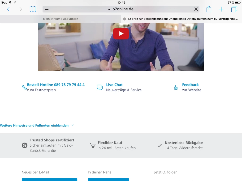 Und hier auf der o2 Free-Seite