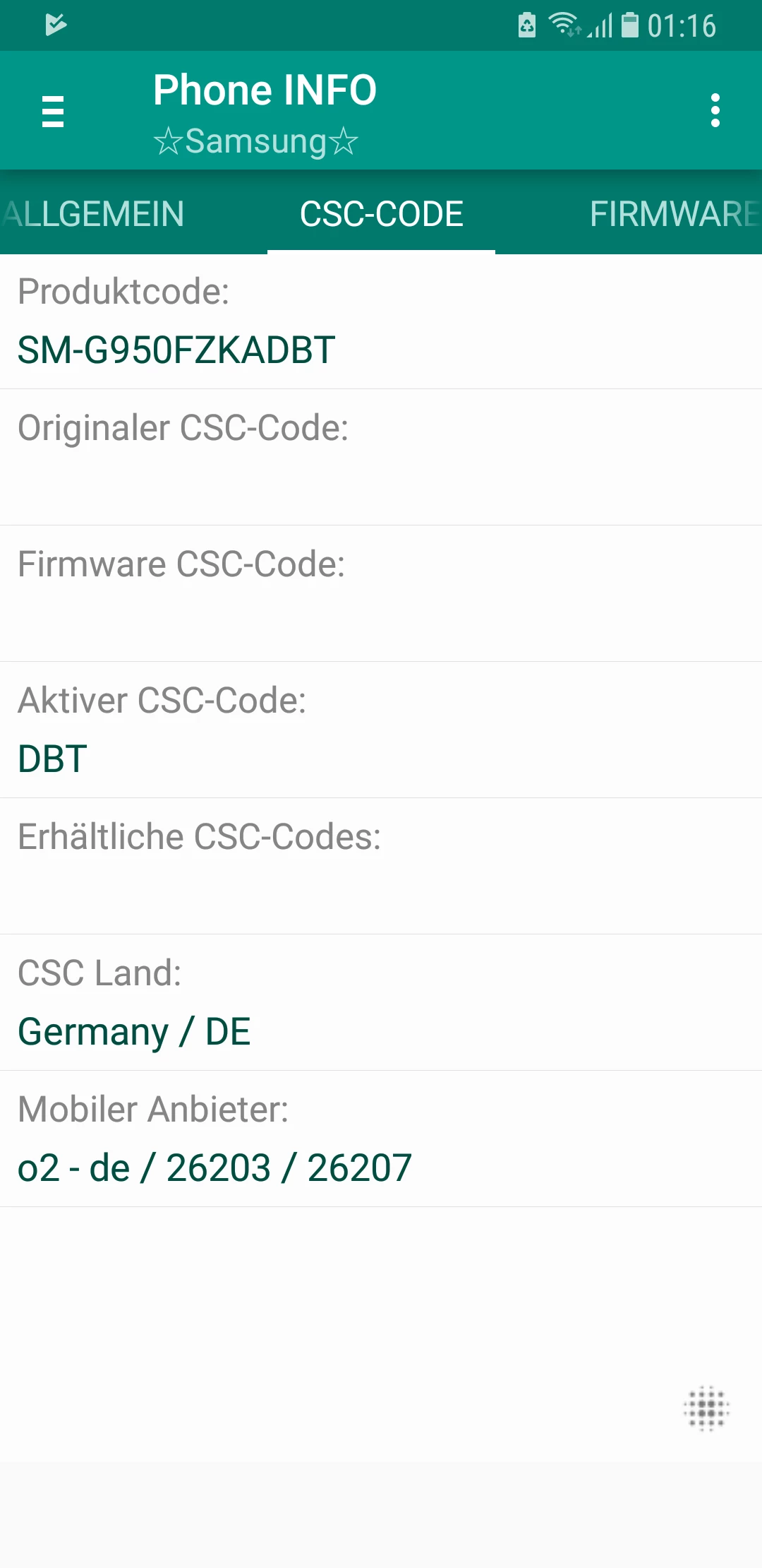 Okay mein Fehler.Lade mal die App Phone Info und schau mal da bei CSC Code.