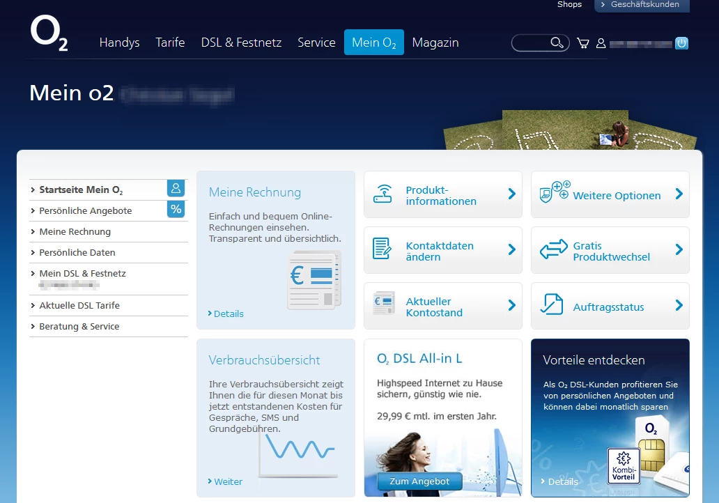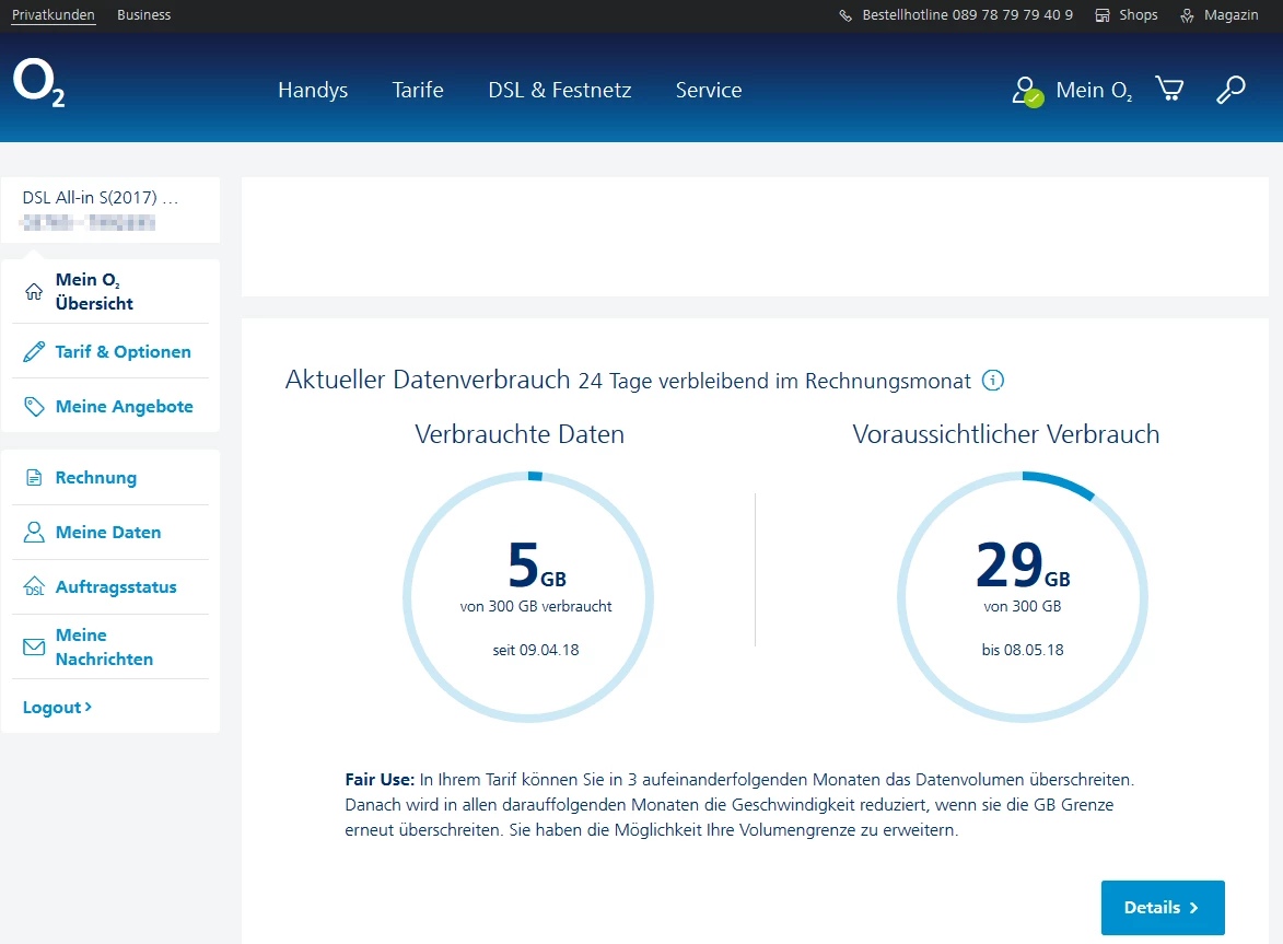 Leider habe ich bei den Zugangsdaten keinen Login für die o2 Homepage bekommen, wo ich meine Rechnung, Vertragsdaten einsehen kann. Das habe ich bei meinem letzen o2 Vertrag allerdings in einer PDF bekommen. DSL, SIP und Homepage Zugangsdaten.