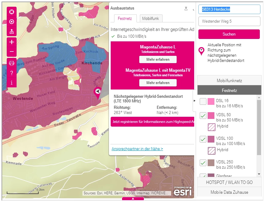 Wäre VDSL verfügbar? Bitte einen Screenshot der Telekom Ausbaukarte hier hochladen und ggf. eine Verfügbarkeitsabfrage von der Seite der Telekom.