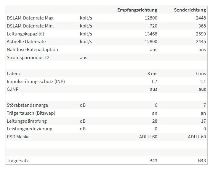 Hier ist DLM aktiv, zu erkennen an 12800/2448 max. Mehr geht hier nicht. Was bietet die Telekom bei dir an?