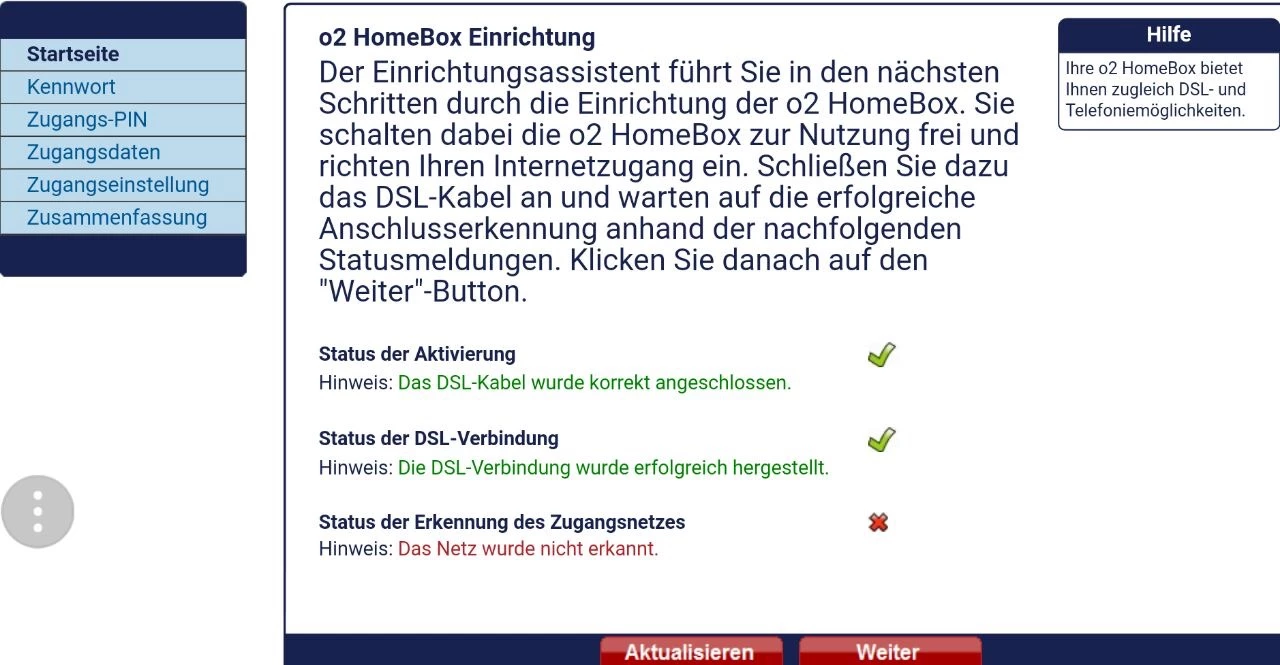 My o2 router gets a red light for info. The network is not recognized (see screenshot). The LEDs Power, DSL and Wi-Fi light up normally green, info however flashes red. Resetting and unplugging repeatedly did not help