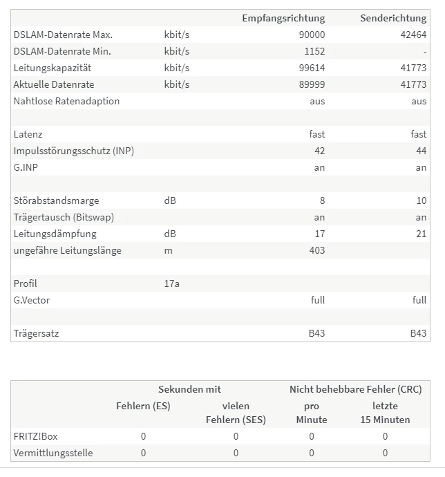 Bitte die Tabelle mit allen Leitungsparametern unter “DSL” posten.