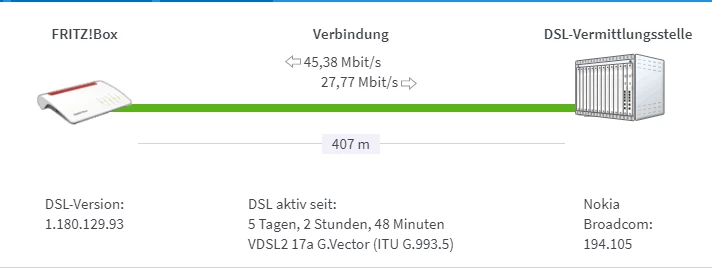 wir sind seit Oktober 2019 DSL Kunden bei O2 und beziehen in unserer Wohnung eine 100MBit/S DSL Leitung. Die 100Mbit haben wir problemlos auch immer erreichen können, im Router waren diese im Download auch einsehbar. Jetzt haben wir seit einigen Tagen das Problem das unsere Downloadrate und Uploadrate ordentlich eingebrochen ist und dies auch im Router einsehbar ist. Die maximale Downloadrate beträgt dort 45.38mbit/s.