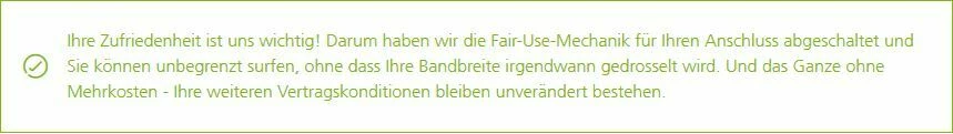 Die Erweiterung ist kostenlos. Ab sofort gilt die Drosselung nicht mehr.