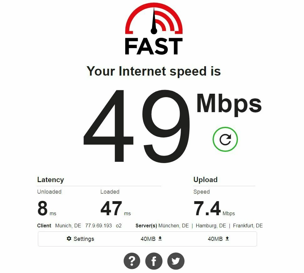 Probier mal einen Testserver in deiner Nähe auf Speedtest