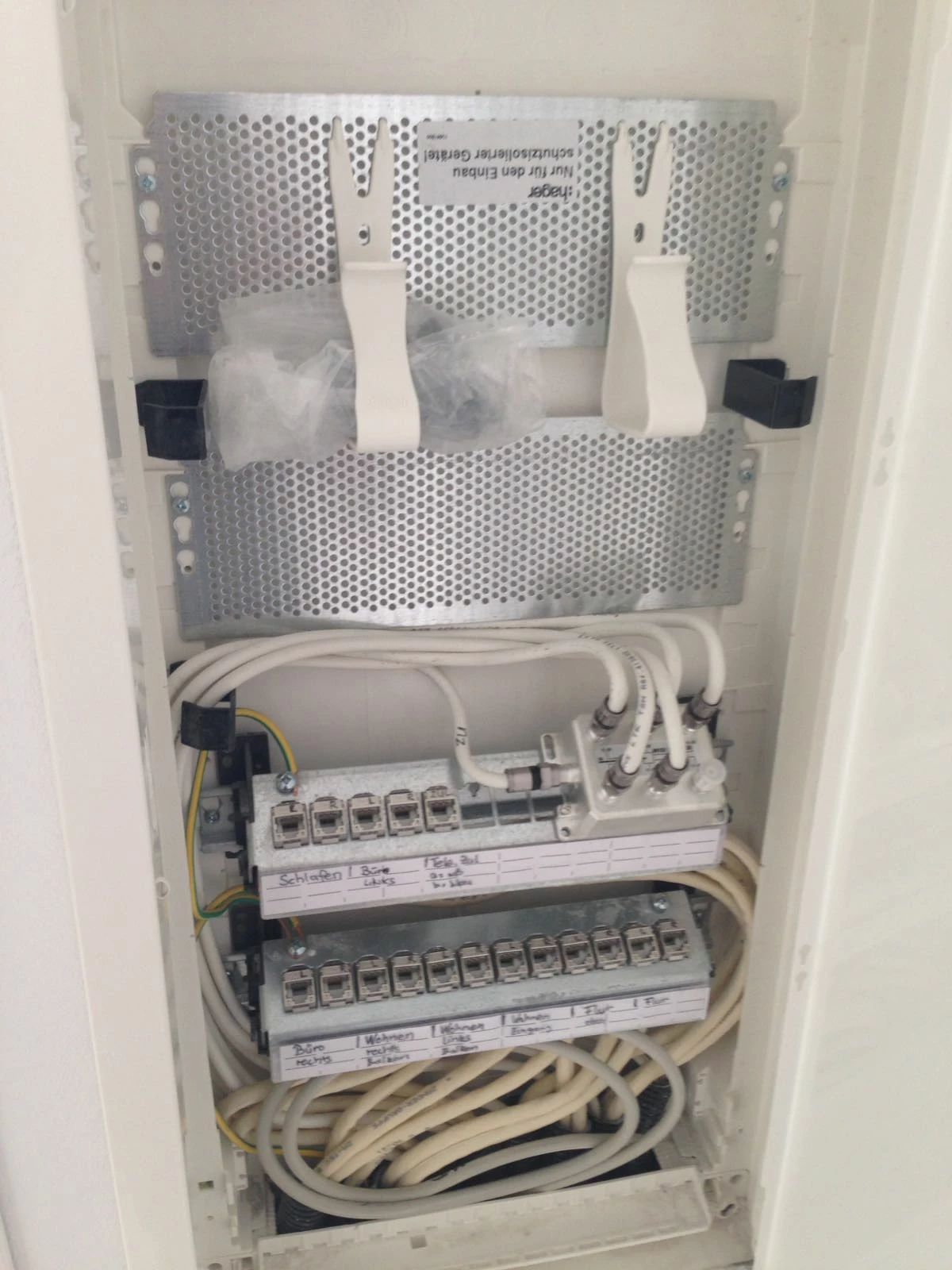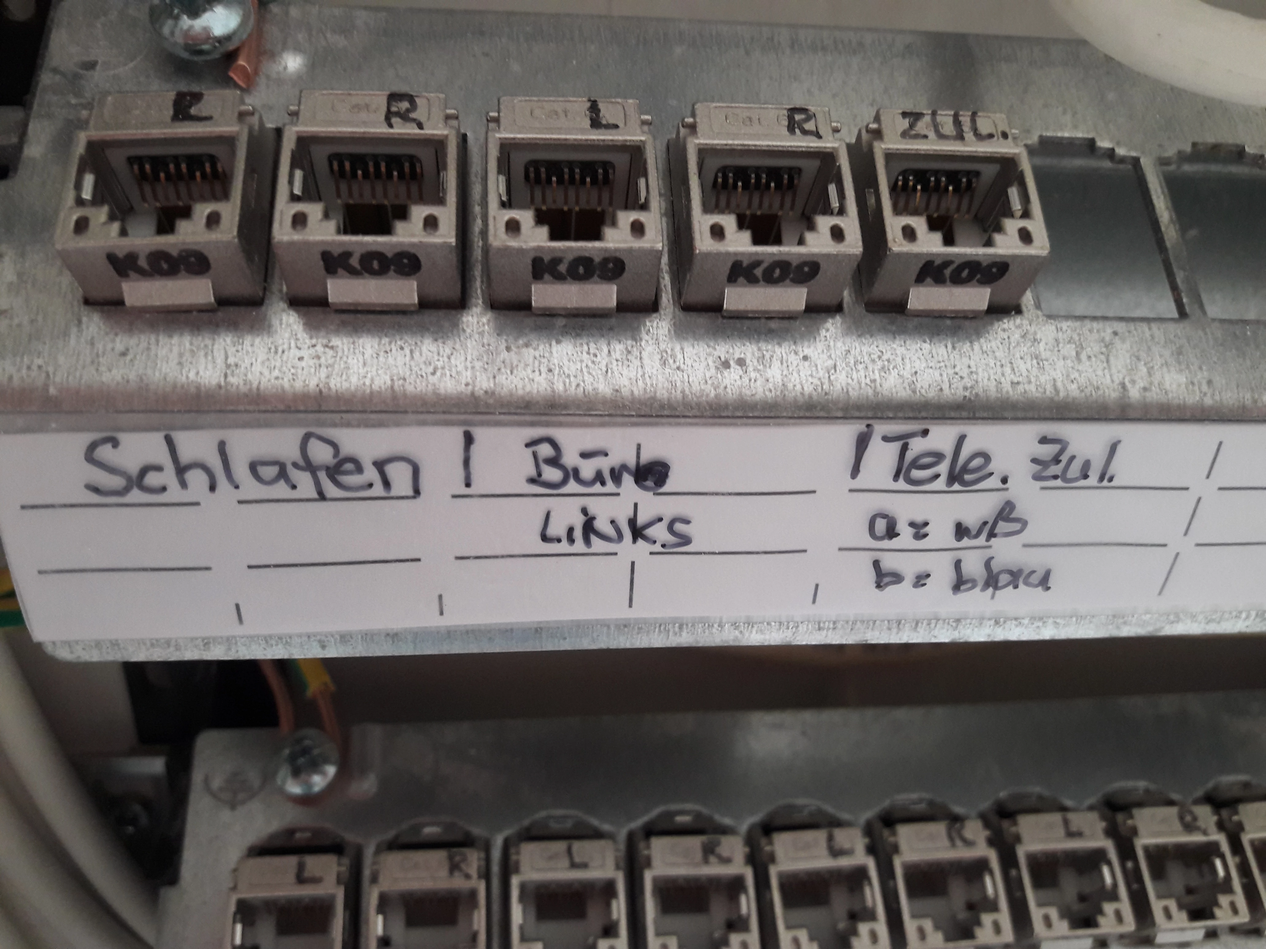 Hallo zusammen, mit dem Elektriker konnte ich heute sprechen, die RJ45-Buchs mit der Bezeichnung Tele.Zul. ist der Telefonanschluss/Übergabepunkt in die Wohnung. Danke für die Hilfe nochmals an alle.