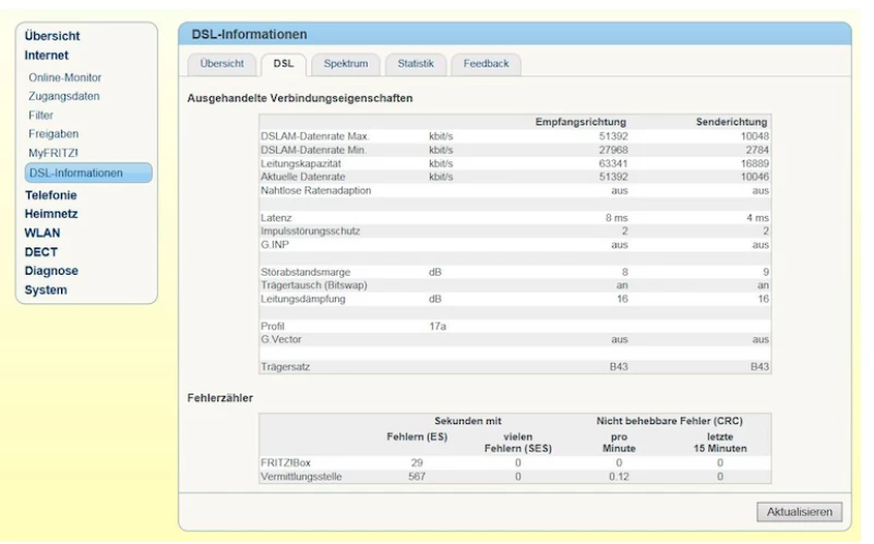 Magst du dich mal auf deiner Fritzbox in der WebGui einloggen und unter DSL Informationen einen Screenshot dieser Seite hier hochladen?