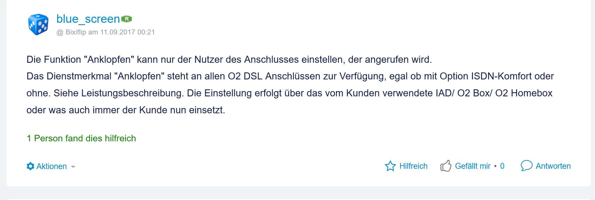 Fazit: Anklopfen ist grundsätzlich seitens O2 möglich, aber mehr oder weniger sinnlos, wenn man das Gespräch dann mit Handset 2 nicht annehmen kann...