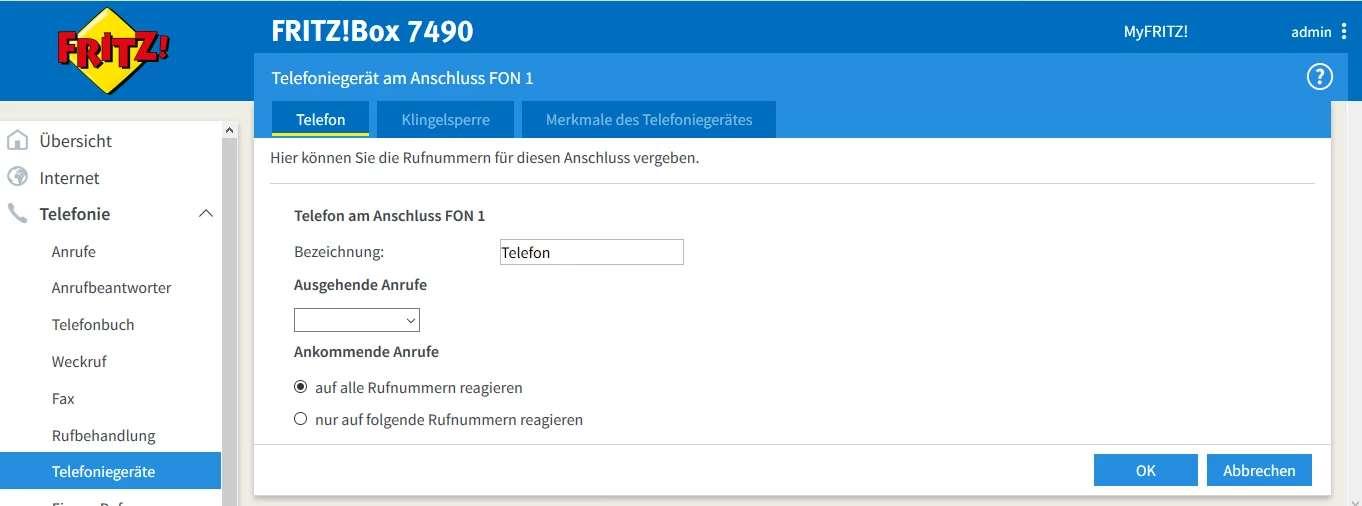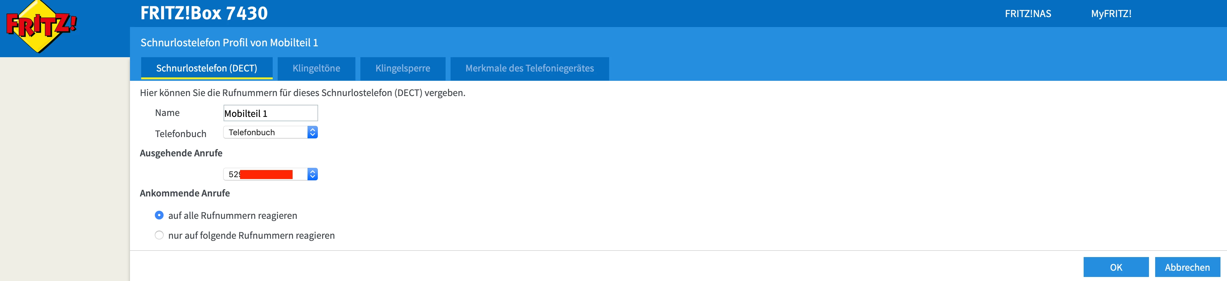 Da das Telefon ich faxen kann wählen wir noch "nur auf folgende Rufnummer reagieren" aus.
