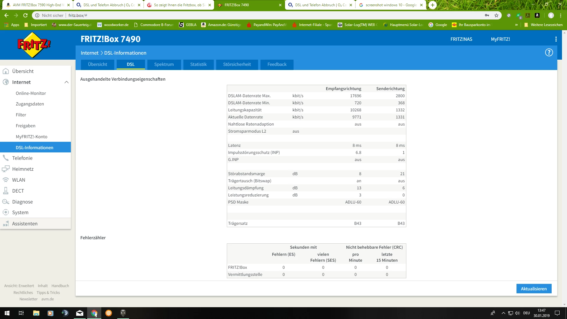 Unter DSL-Informationen/DSL könntest Du uns einen screenshot hier reinstellen. Dann kann man das Problem vermutlich erkennen.