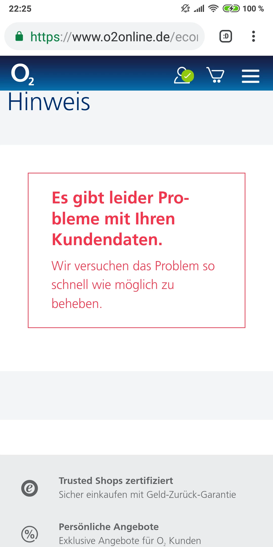 Diese Meldung kommt sobald ich die Vertragsverlängerung anklicke.