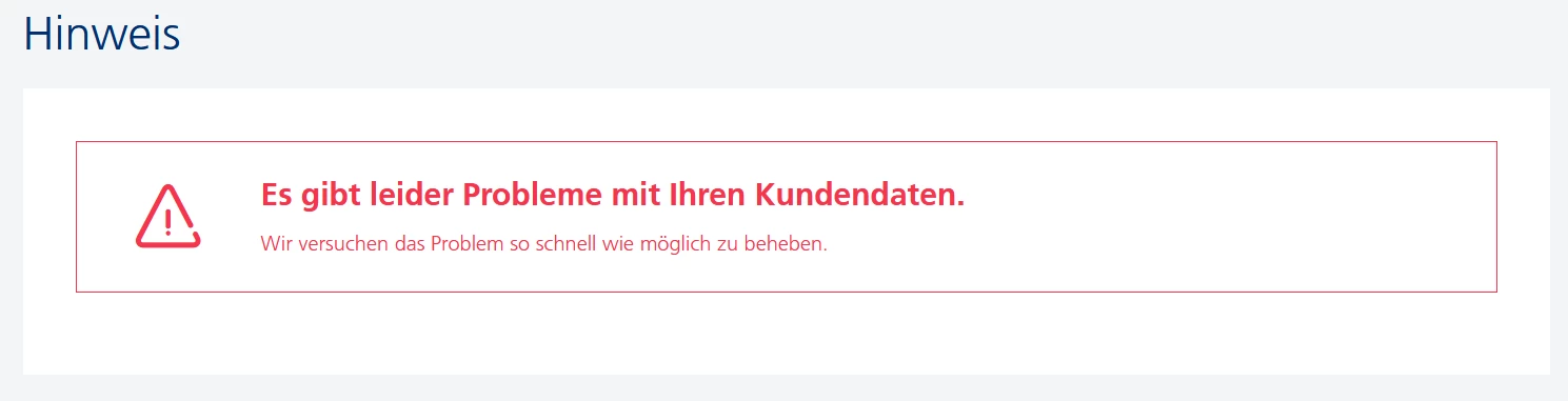 Online kann ich den Vertrag ebenfalls nicht verlängern, da ich jedes Mal diese Fehlermeldung erhalte, obwohl meine Kundendaten aktuell sind: