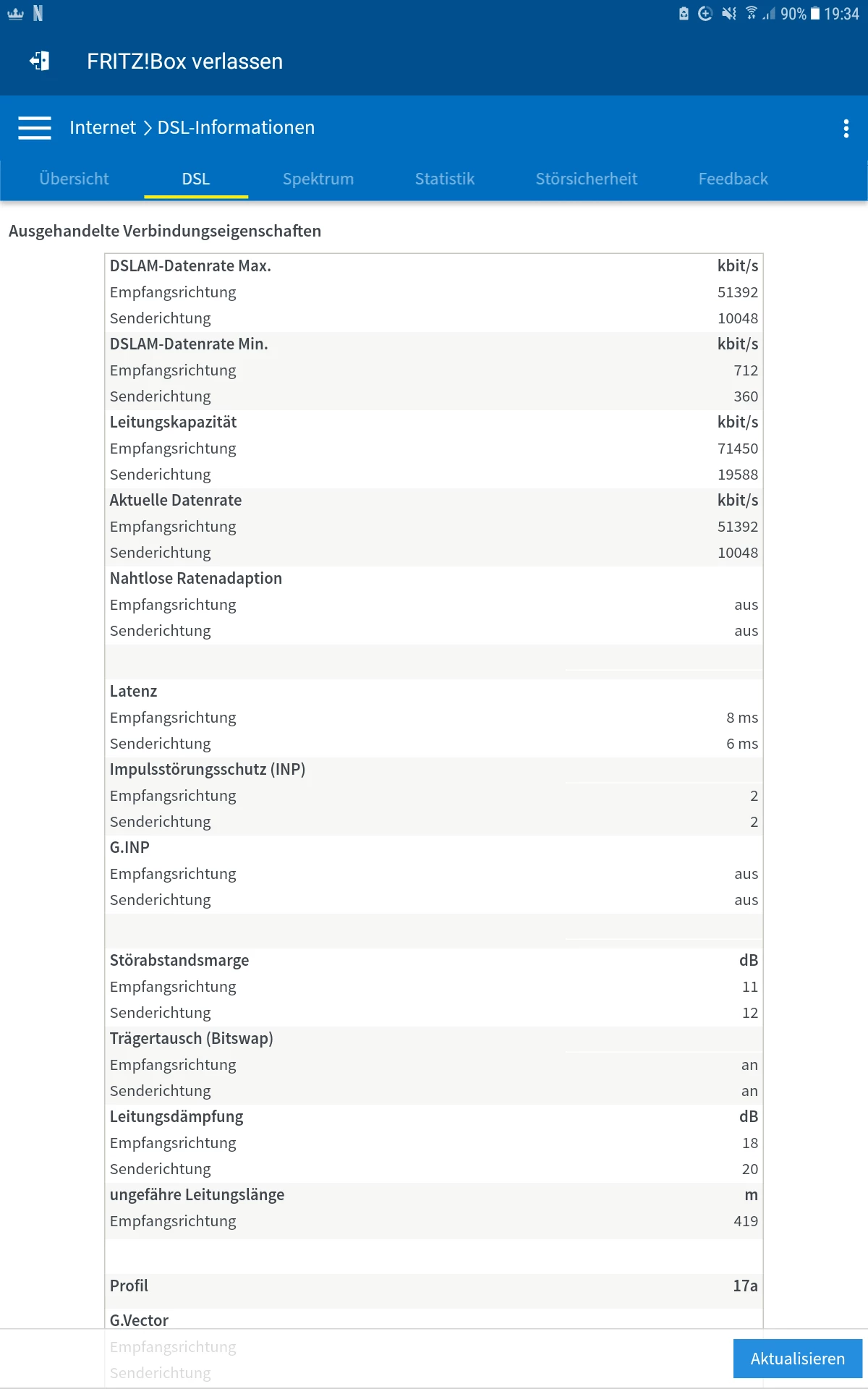 Jetzt ist es eindeutig du hängst auf einem Annex J ADSL 2+ Port und nicht auf VDSL Port. Wenn bei dir lt Verfügbarkeit VDSL möglich ist brauchst du einen Technologiewechsel auf VDSL