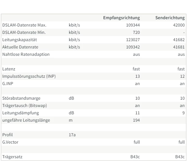 Sollte bei diesen Daten nicht auch 100/40 als Datenrate möglich