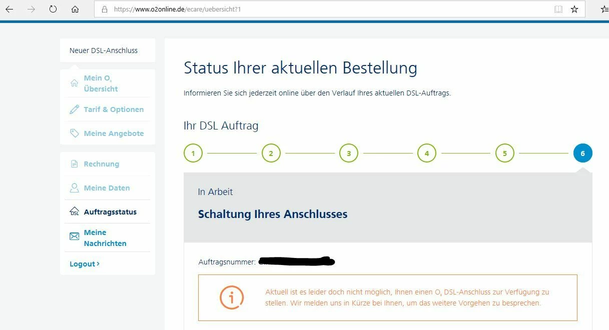 Allerdings stand im Willkommensbrief, dass die SIP-Zugangsdaten direkt nach der Schaltung online unter Mein O2 abgerufen werden können, da wir einen eigenen Router benutzen. Aber unter My O2 steht nur "In Arbeit: Schaltung ihres Anschlusses. Daraufhin bei O2 in der Hotline angerufen und dort hieß es, das dass bis 24h dauern kann, bis der Prozess durchgelaufen ist und die SIP-Zugangsdaten abrufbar sind. Am nächsten Tag wieder bei O2 angerufen und dann wurde mir gesagt, der Status hängt wohl und es wurde ein Ticket für das "Status-Clearing" geschrieben. Gestern erneut bei O2 angerufen und dort hat mir nach dreimal weiterverbinden der Techniker gesagt, dass er leider nichts für tun kann - der Prozess muss er korrekt durchlaufen und danach wird mein Status aktualisiert und dann kann ich die SIP-Zugangsdaten online abrufen. Heute immer noch keine Zugangsdaten, immer noch kein Telefon. Das kann doch nicht sein, dass man bei einem ganz normalen Anbieterwechsel Stand heute schon 5 Tage ohne Telefon ist...