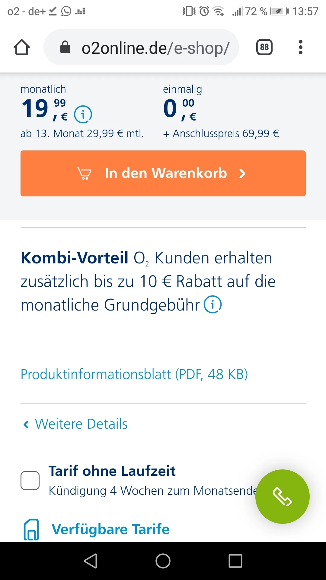 Dann hab ich mir den Vertrag angeschaut und gesehen das es 12 Monate lang 10€ Rabatt gibt.
