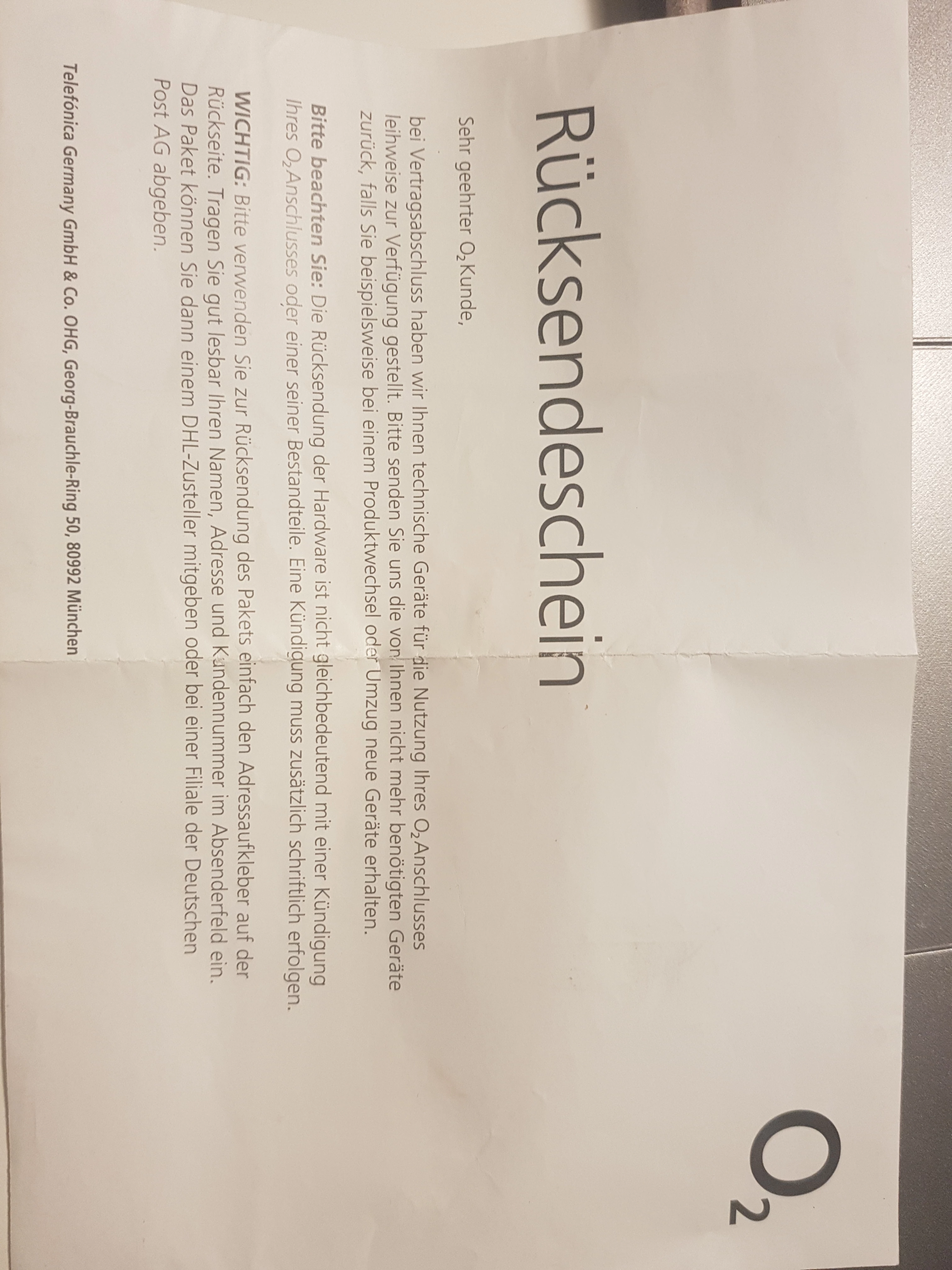 Ich habe immer noch Rücksendeschein von O2 damit möchte ich mein Geld zurückbekommen