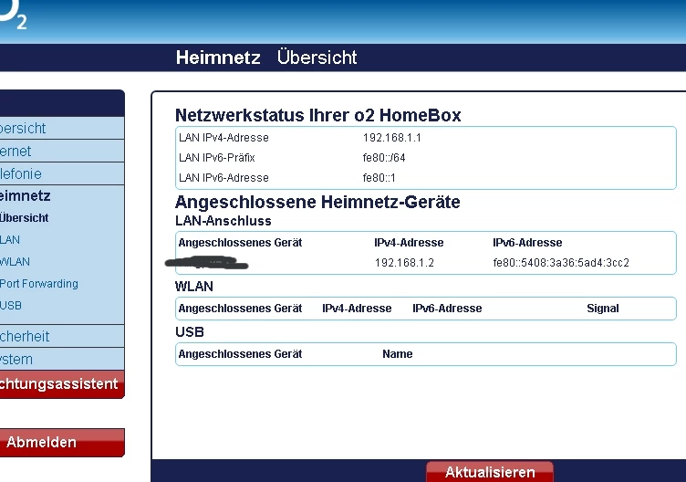 der Router meldet hinsichtlich der Werte, mit denen er verbunden ist, folgendes: