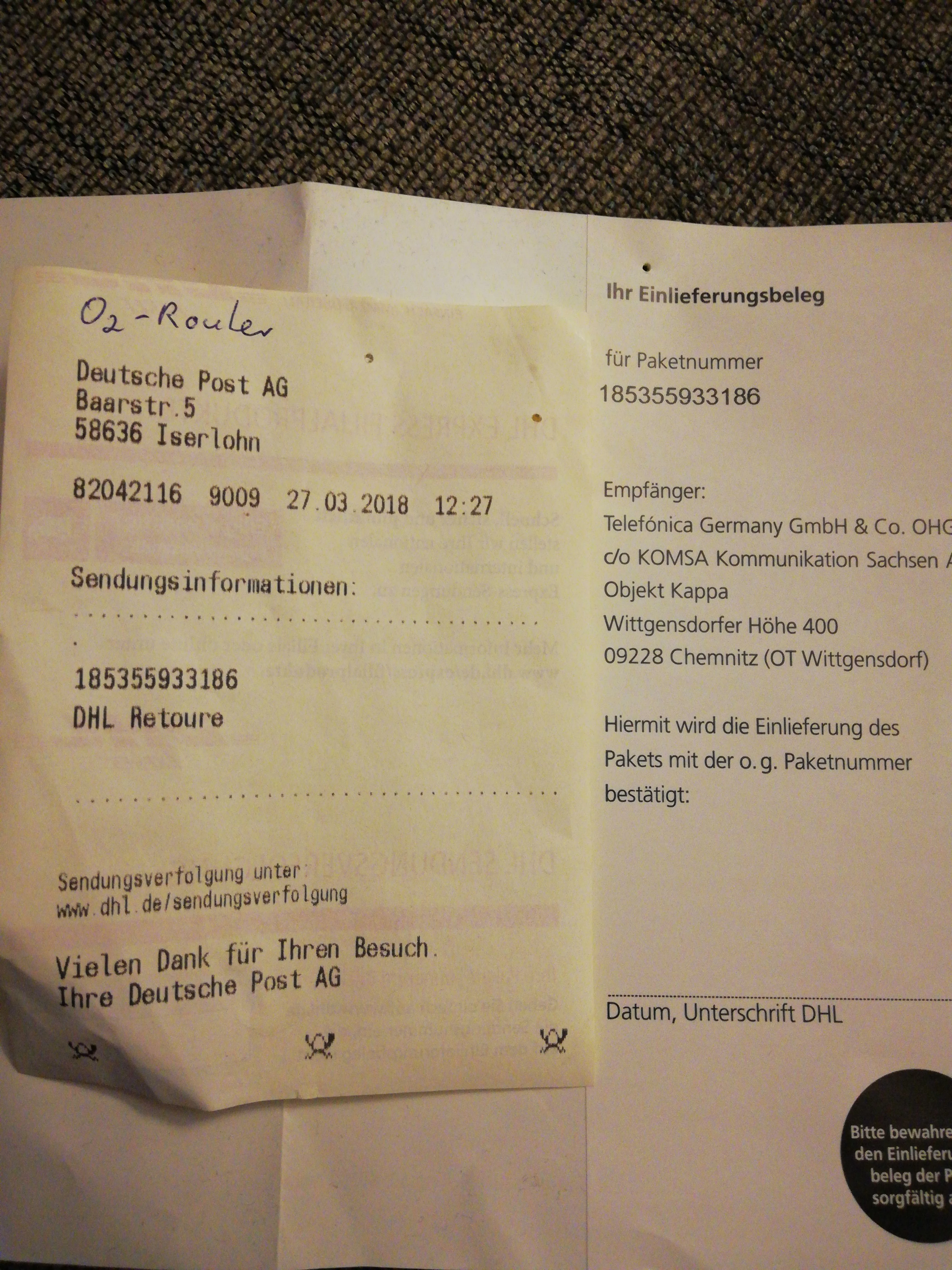 Hast du kontrolliert ob die Sendung bei o2 eingegangen ist? Wenn du möchtest, dass dein Anliegen an die Logistik zur Prüfung weitergeleitet wird, bitte noch den Sendungsbeleg hochladen.