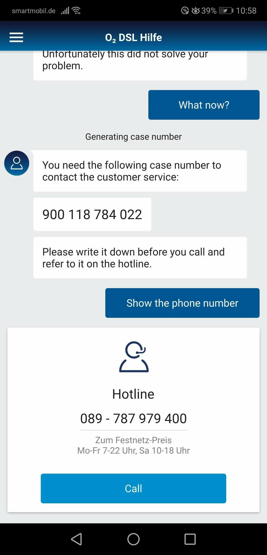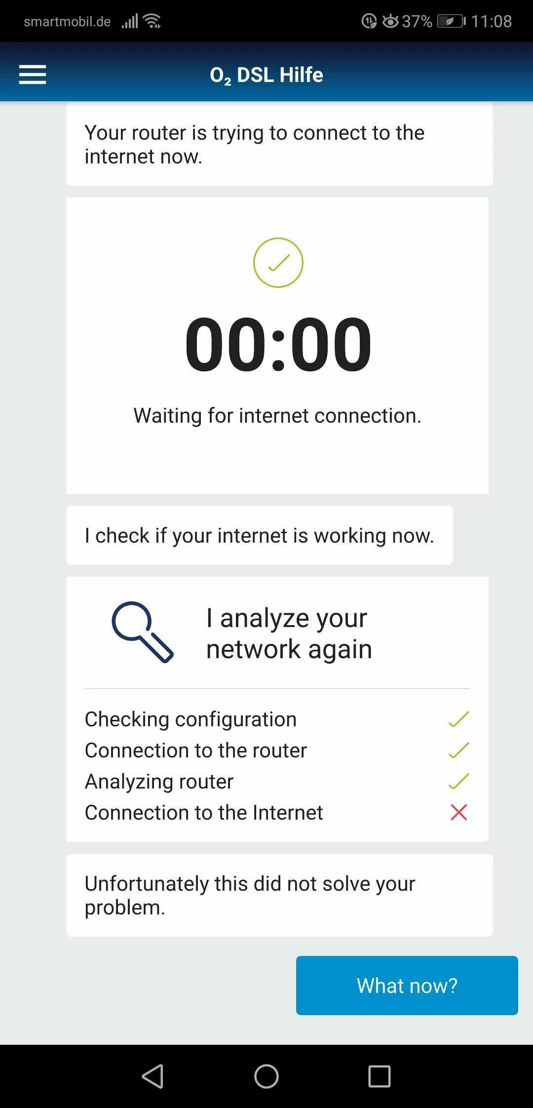 Today I continue to call O2 service team. Based on their instruction, I have downloaded a Handy App (O2 DSLHilfe), and run the test. Everything appears correct, except for internet connection. I have also received a case number 900 118 784 022, which I have also shared with O2 service team later.