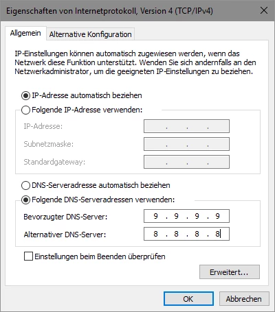 Noting else. You could configure the Fritzbox to the DNS 9.9.9.9 or any other if you thing that O2 cause the problem.